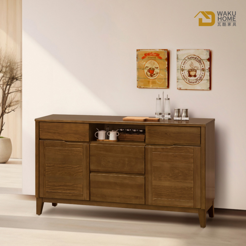 採用符合國際標準低甲醇防蛀木心板 抽屜採用三節式鋼珠滑軌 門片採用油壓緩衝鉸鍊五金 櫃體採用松木實木材質搭配木心板 桌腳使用全實木腳座