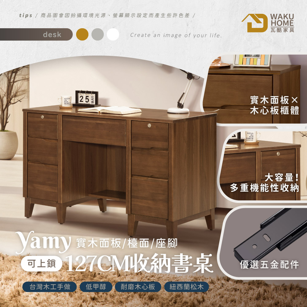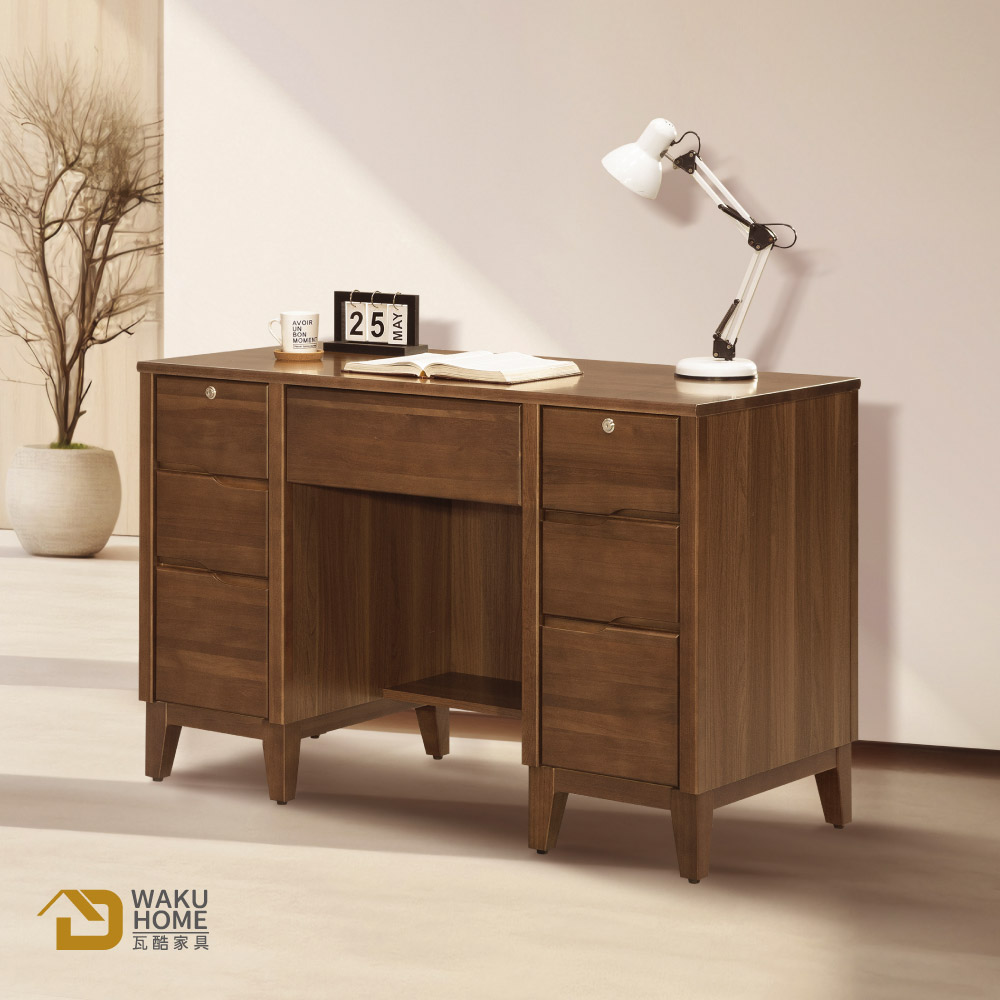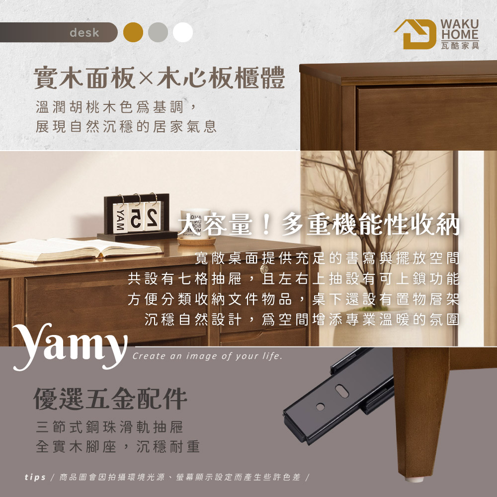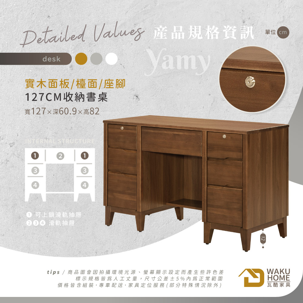 採用符合國際標準低甲醇防蛀木心板 桌板採用松木實木板 抽屜採用三節式鋼珠滑軌 櫃體採用松木實木材質搭配木心板 桌腳使用全實木腳座