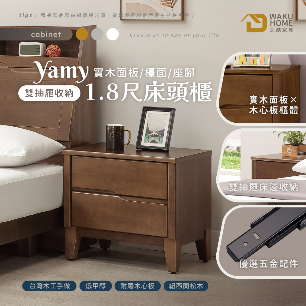採用符合國際標準低甲醇防蛀木心板 抽屜採用三節式鋼珠滑軌 櫃體採用松木實木材質搭配木心板 櫃腳使用全實木腳座