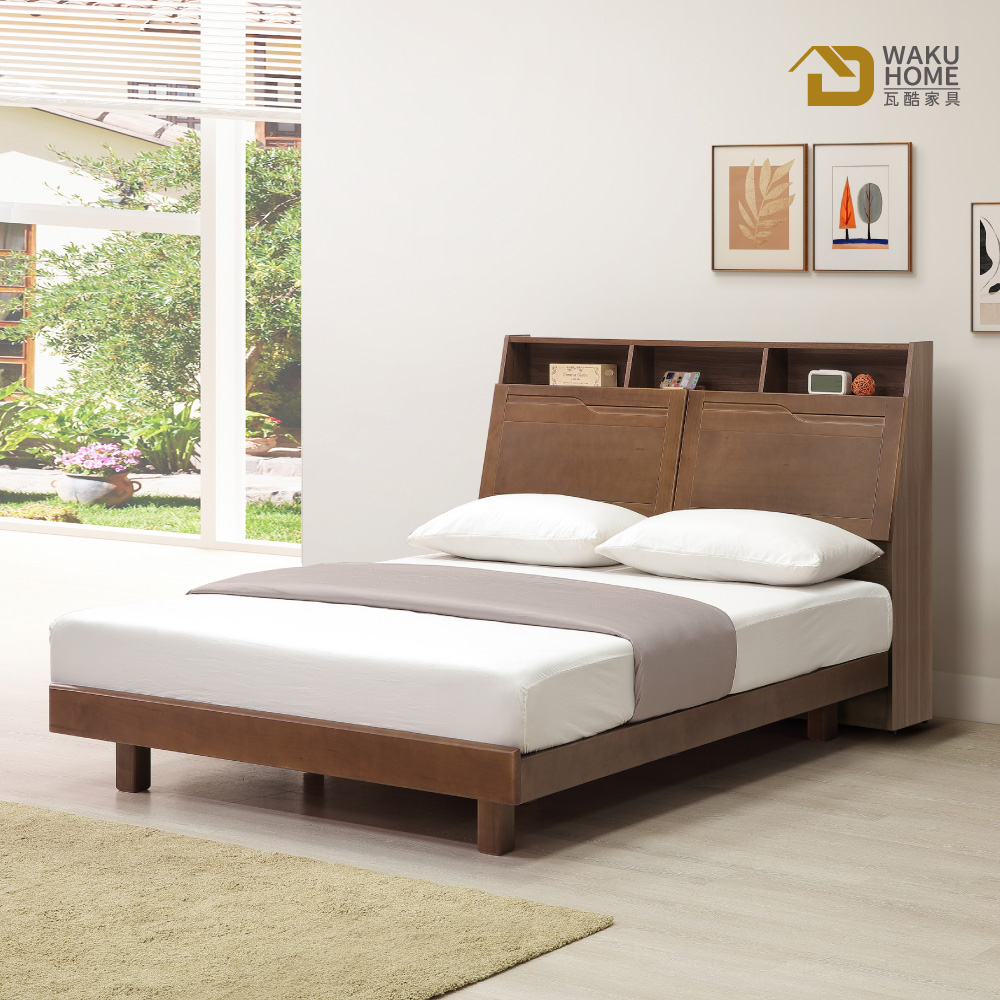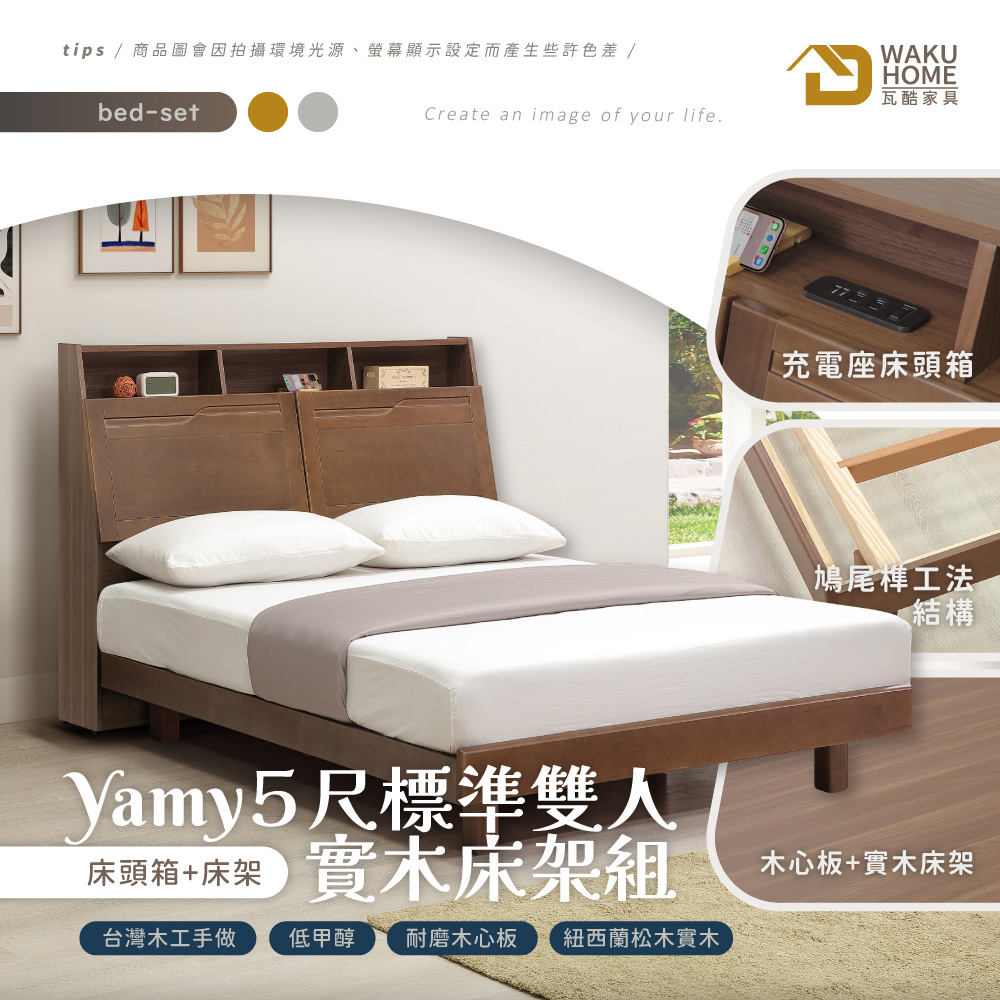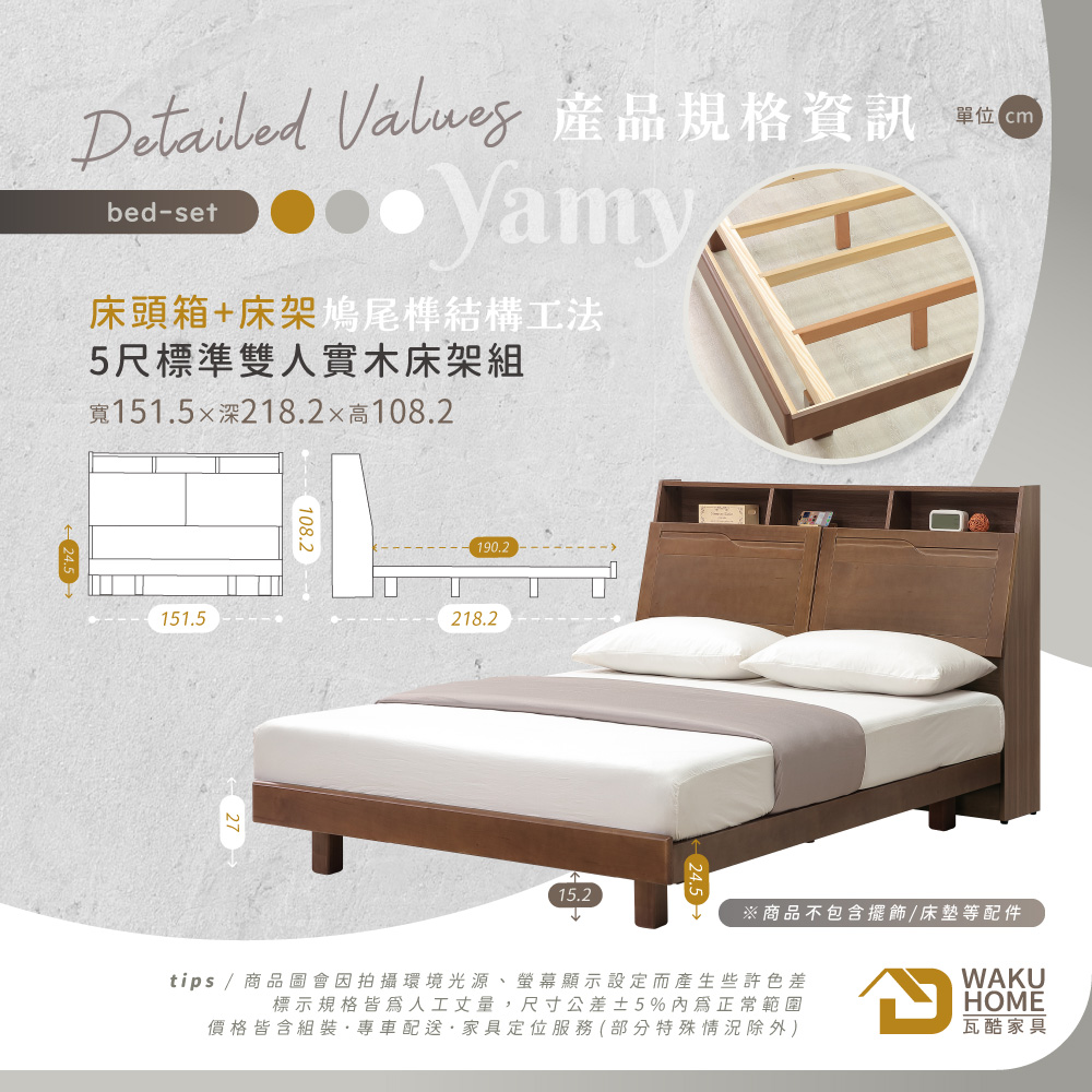 採用符合國際標準低甲醇防蛀木心板 床架採用松木實木材質搭配木心板床板 床架使用鳩尾榫結構工法 床頭箱設有USB+2P充電座