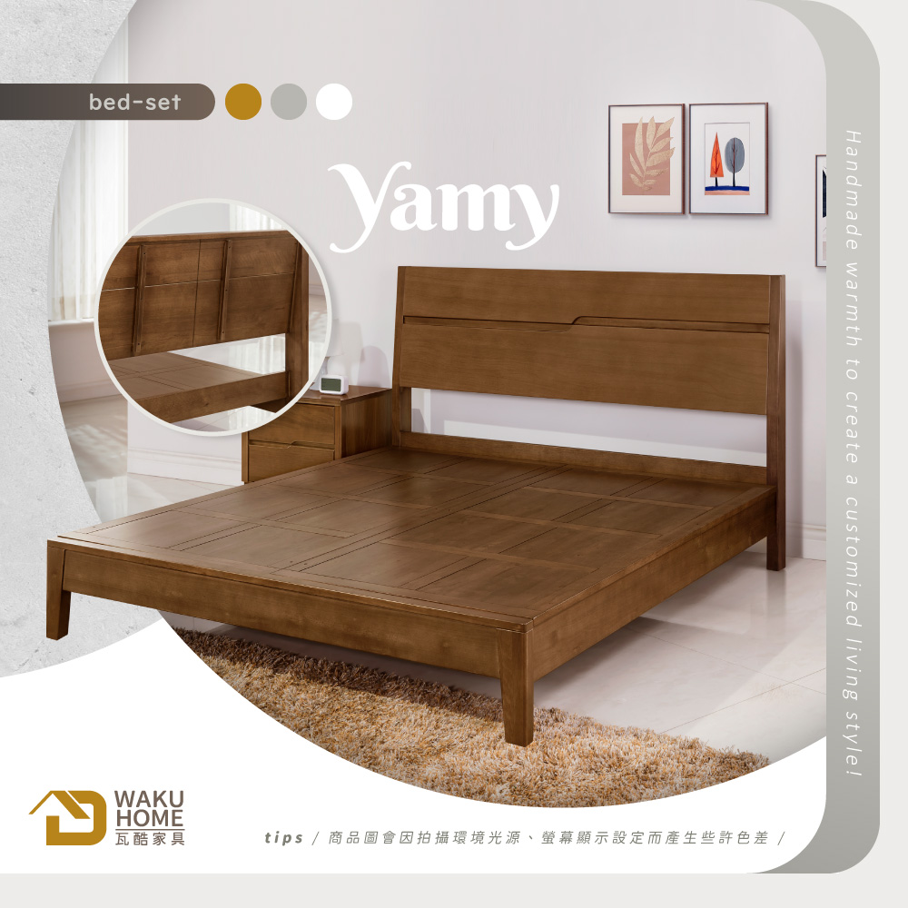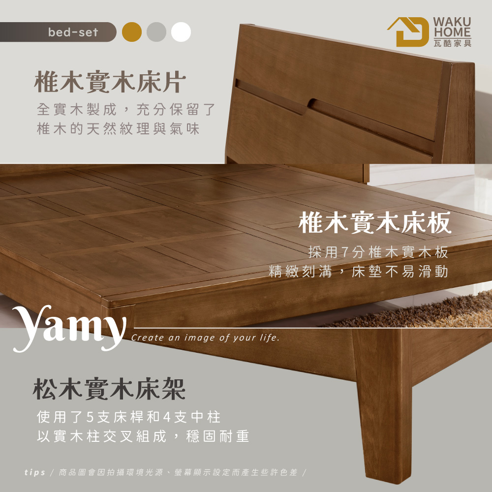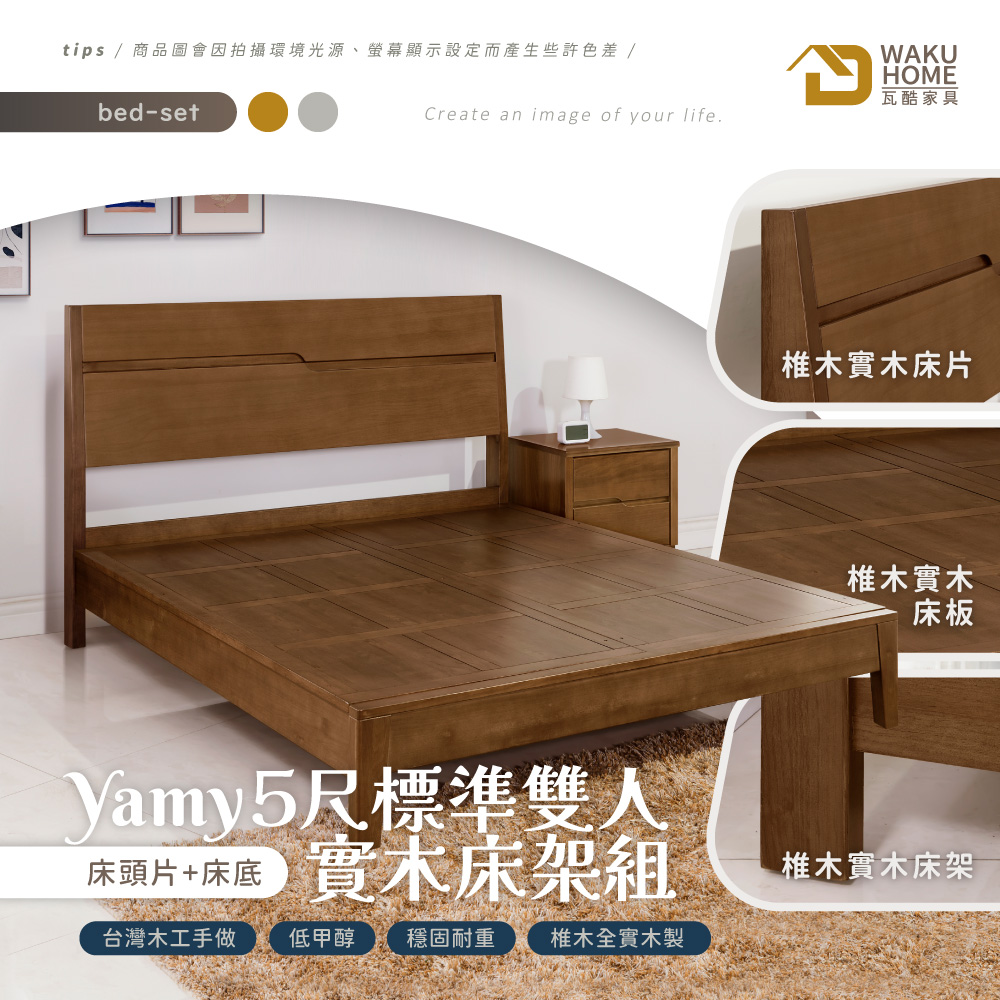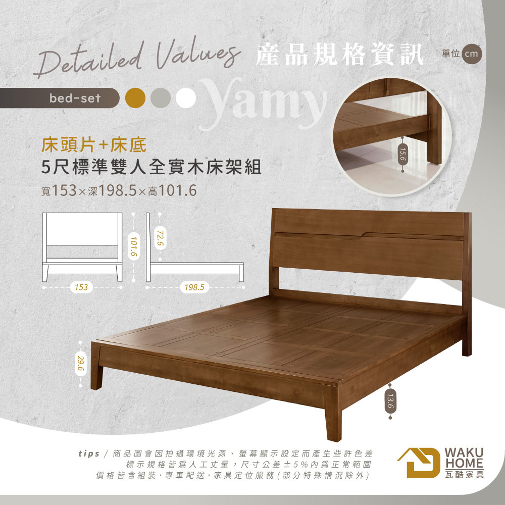 Yamy5尺標準雙人淺胡桃全實木片床式床組