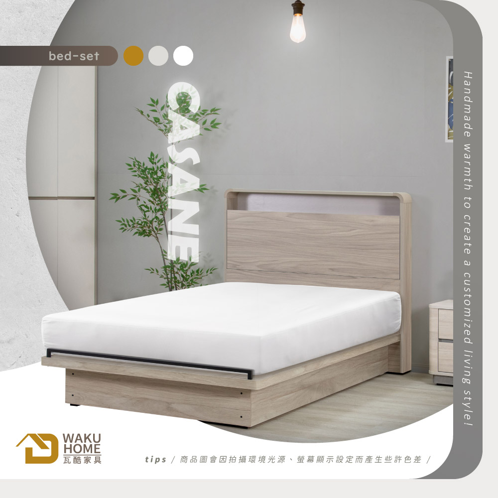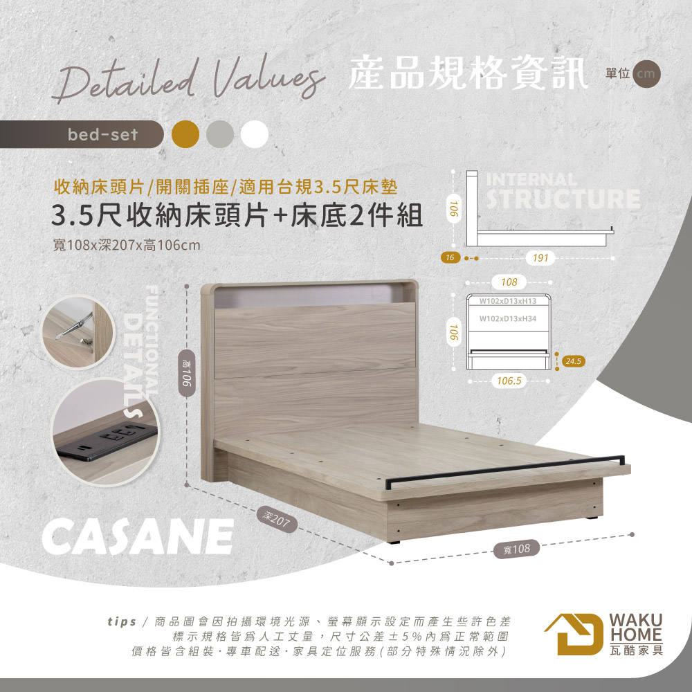 CASANE義式撞色風 3.5尺收納床頭片+床底2件組(附插座)B001-K884+K890
