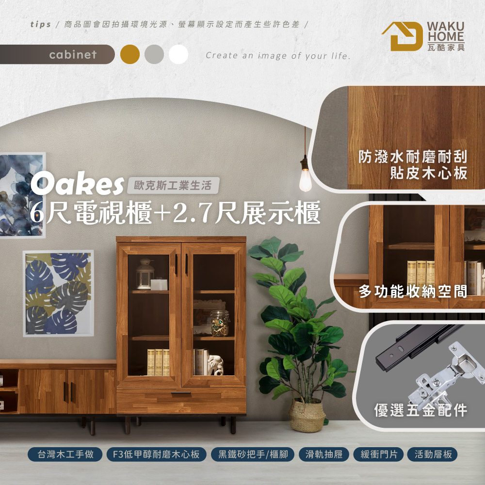 歐克斯工業生活6尺電視櫃+2.7尺展示櫃B001-766+780