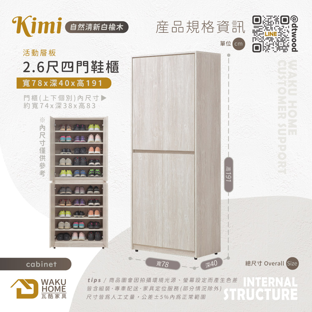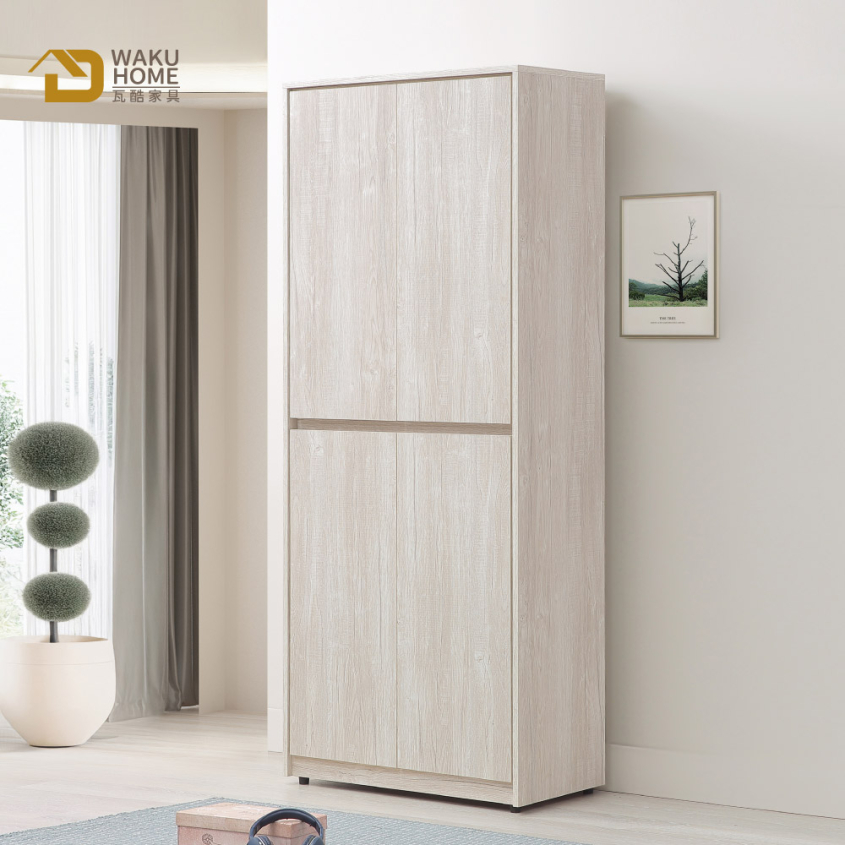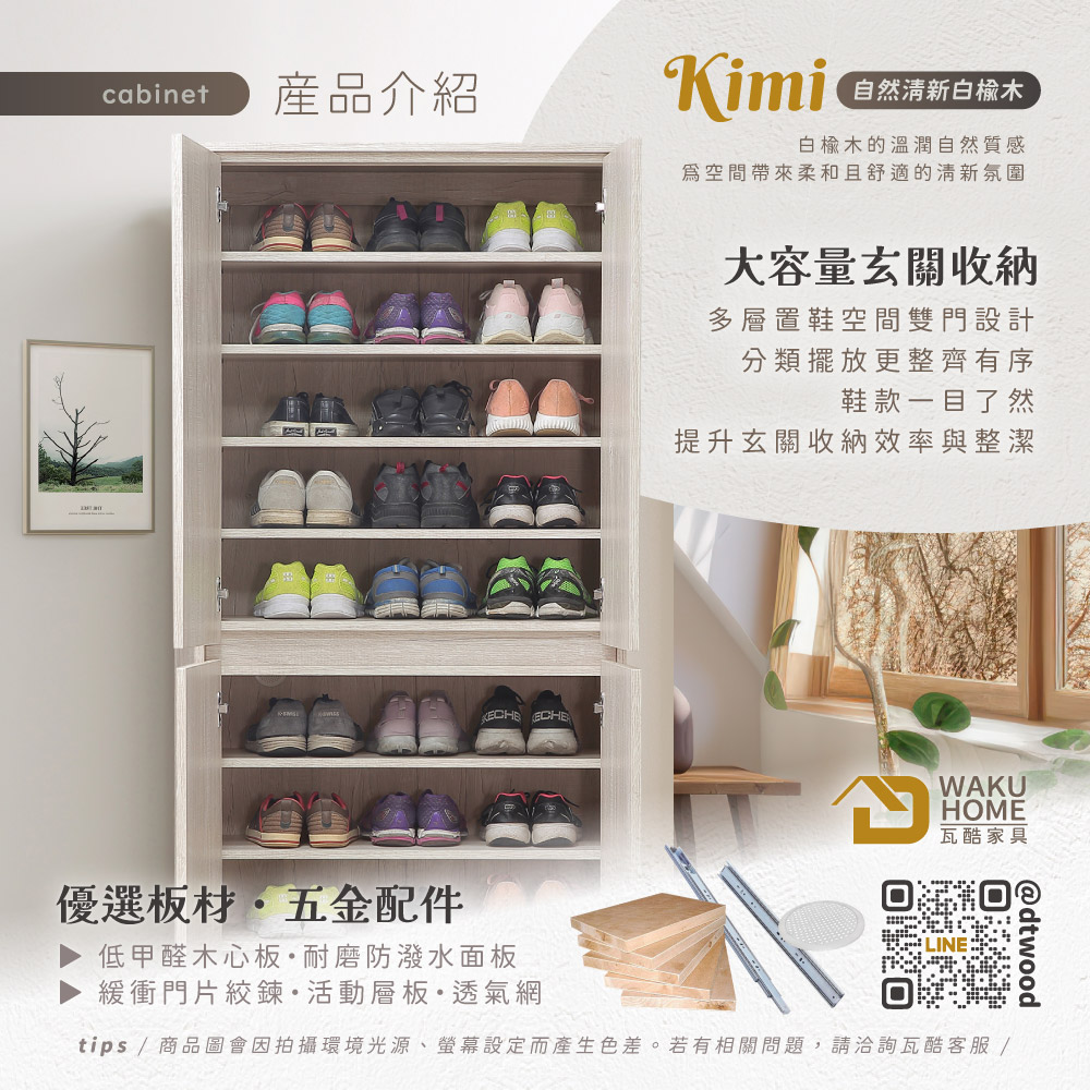 1.符合國際標準低甲醛防蛀木心板 2.耐磨防撥水面板 3.門片採緩衝鉸鍊五金 4.櫃體層板為可移動式,可依個人使用需求調整 5.櫃體設置透氣網兼具美感及透氣功能
