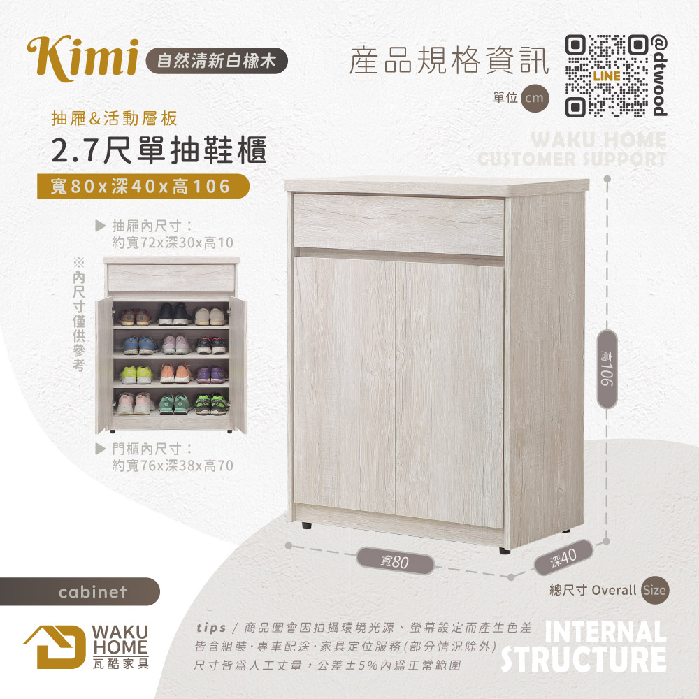 1.符合國際標準低甲醛防蛀木心板 2.耐磨防撥水面板 3.抽屜採用鋼珠滑軌 4.門片採緩衝鉸鍊五金 5.櫃體層板為可移動式,可依個人使用需求調整