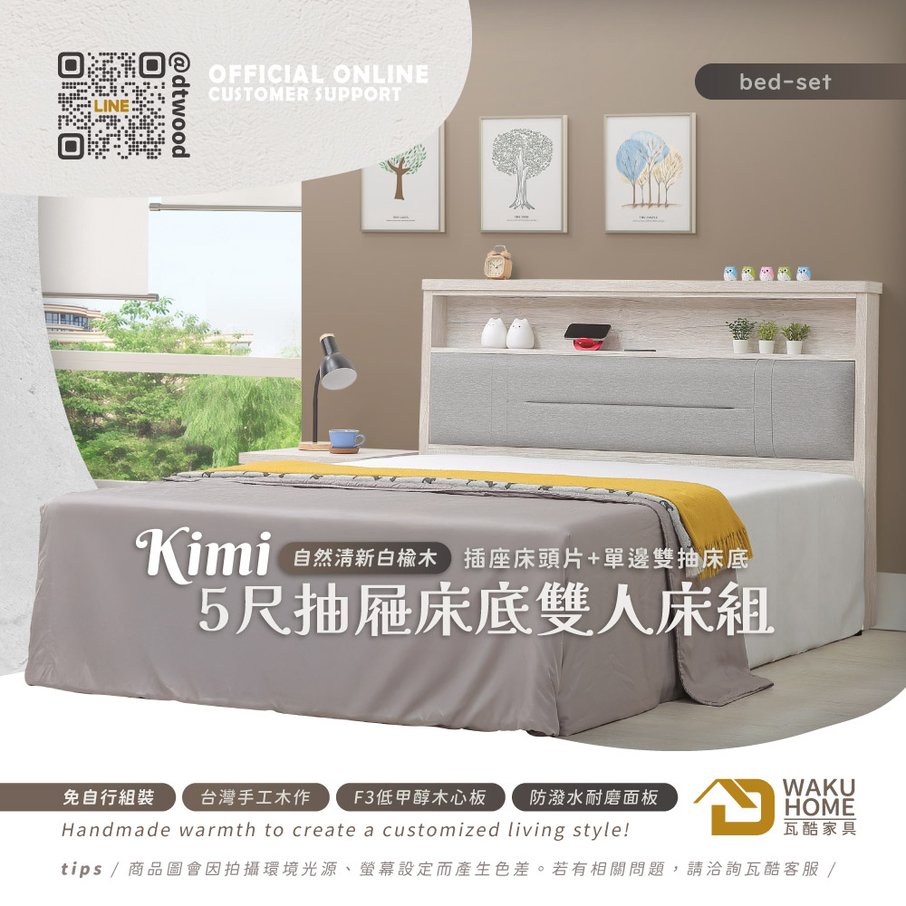 1.符合國際標準低甲醛防蛀木心板 2.床頭片使用PVC耐磨皮革靠墊 3.設置2P三插延長插座 4.抽屜採用鋼珠滑軌