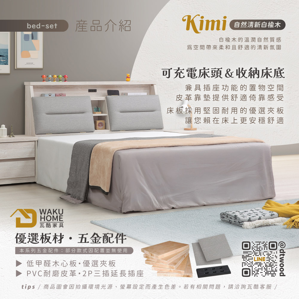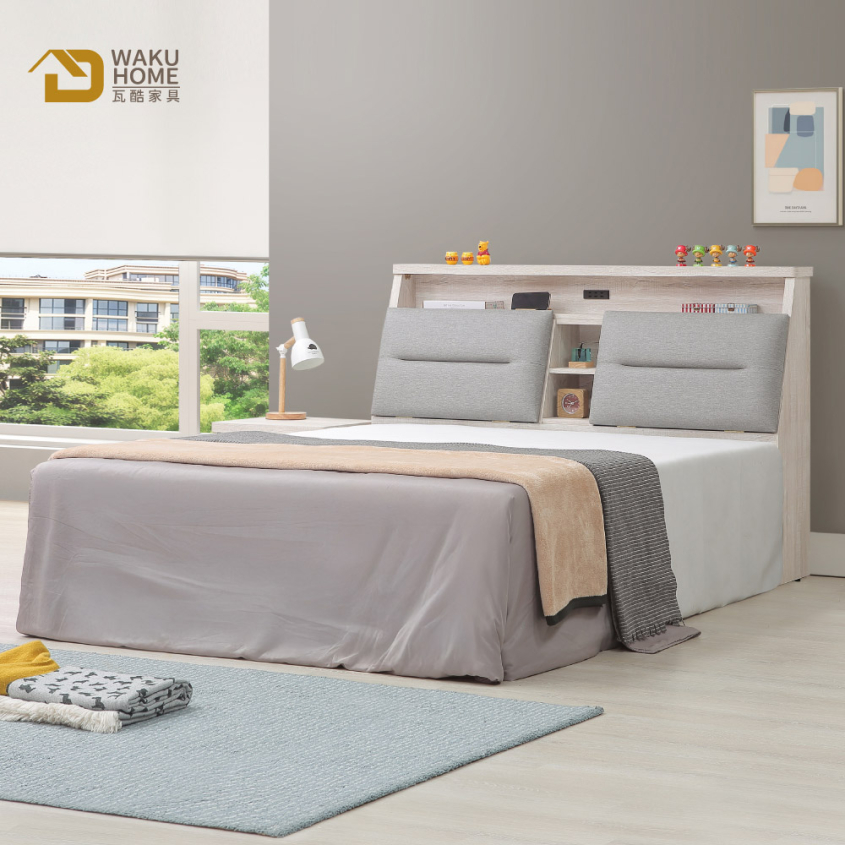 1.符合國際標準低甲醛防蛀木心板 2.床頭片使用PVC耐磨皮革靠墊 3.設置2P三插延長插座 4.抽屜採用鋼珠滑軌