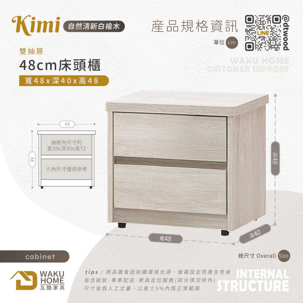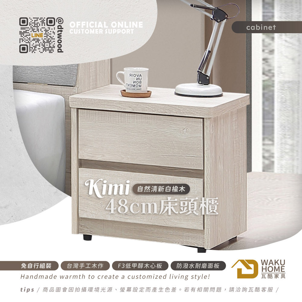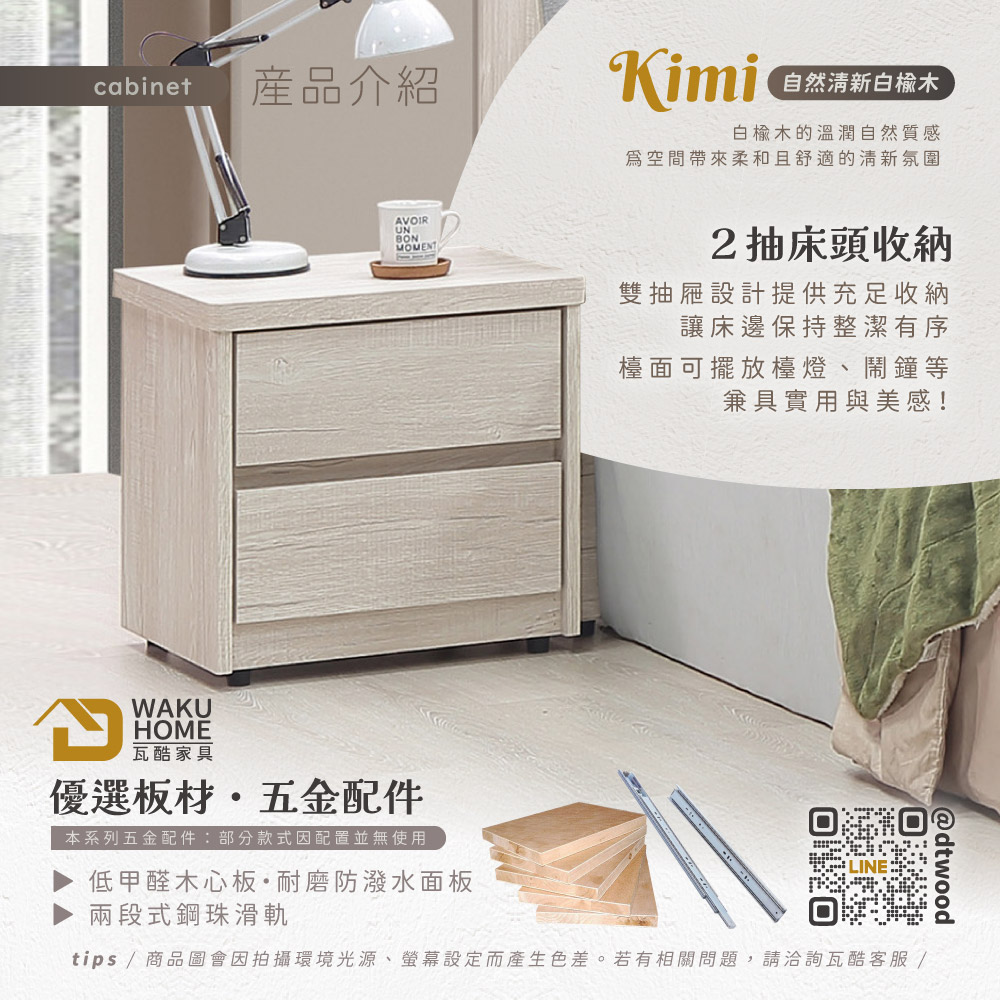Kimi自然清新白榆木床頭櫃