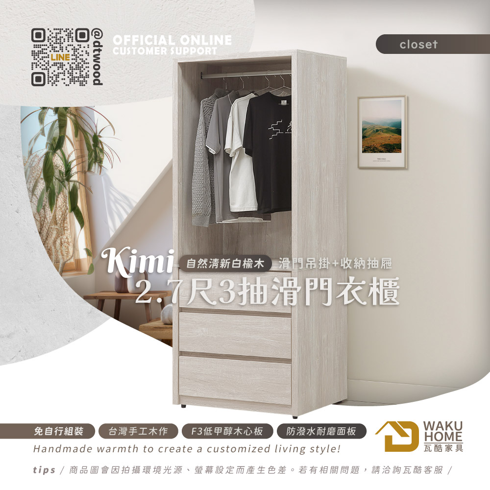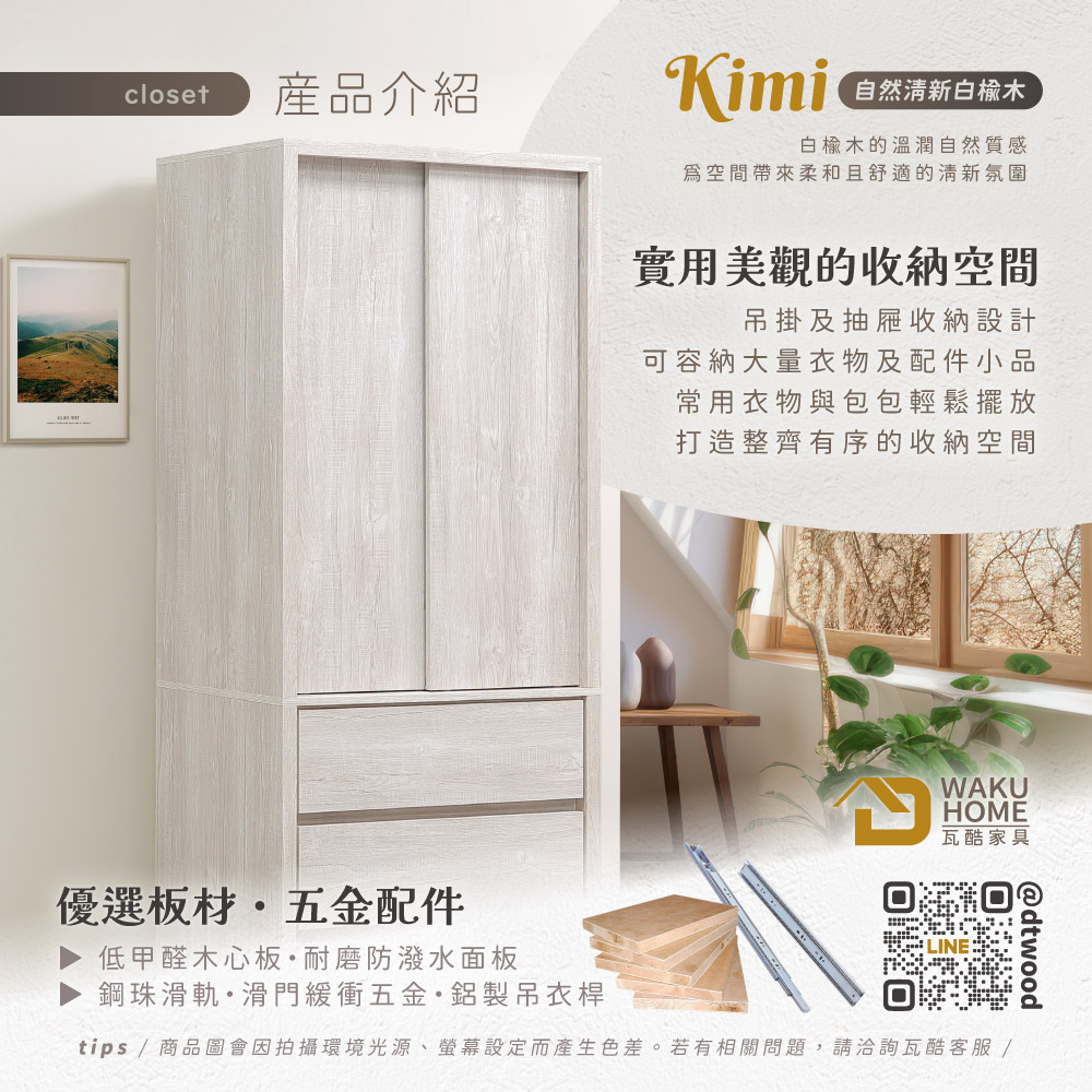 1.符合國際標準低甲醛防蛀木心板 2.採用鋁製吊衣桿 3.採用防潑水耐磨面板 4.抽屜採用鋼珠滑軌五金