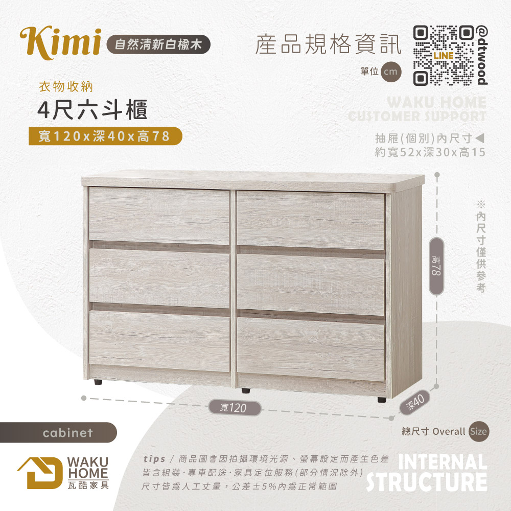 Kimi自然清新白榆木4尺六斗櫃A005-769