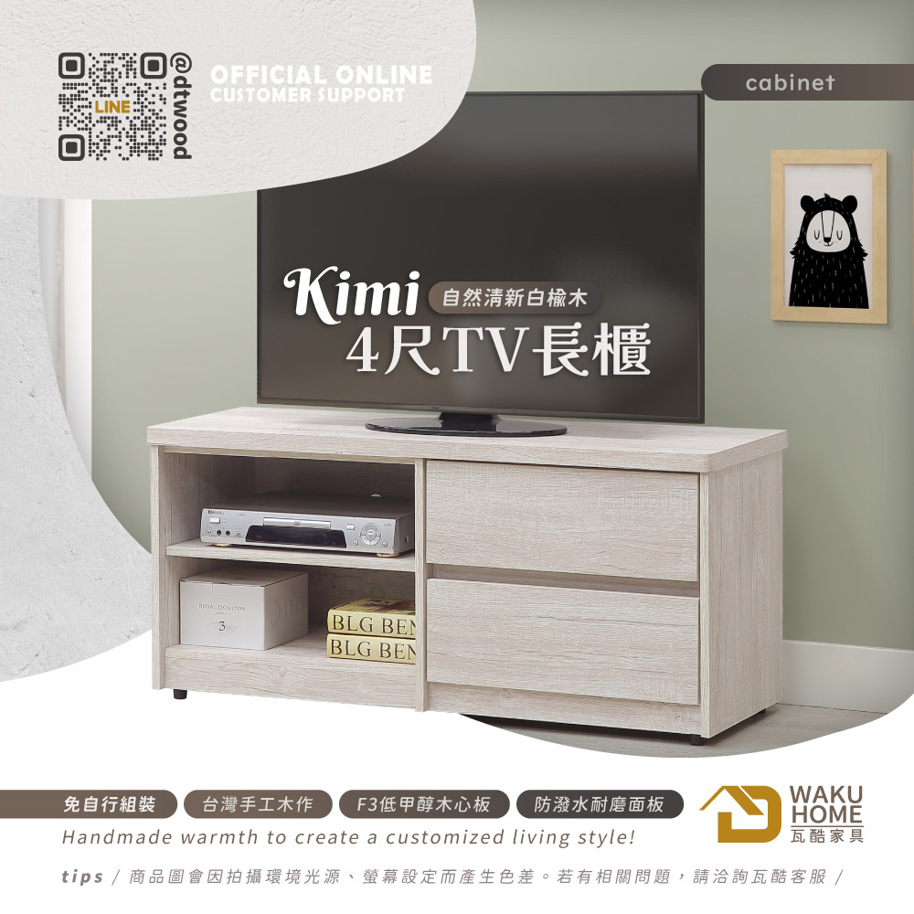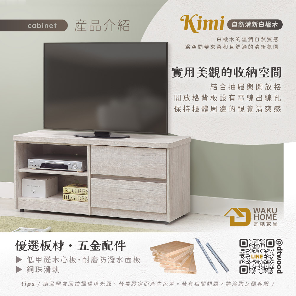 Kimi自然清新白榆木4尺TV長櫃