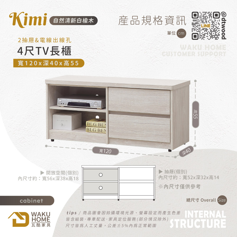 Kimi自然清新白榆木4尺TV長櫃A005-775