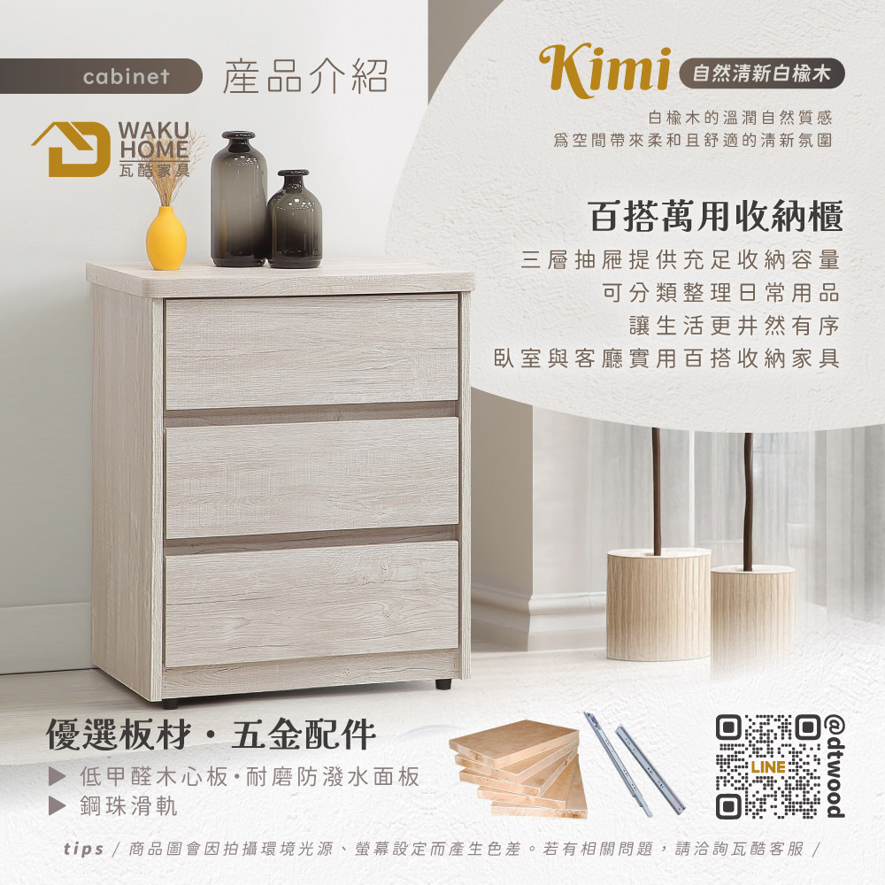 Kimi自然清新白榆木2尺3抽收納櫃/三斗櫃