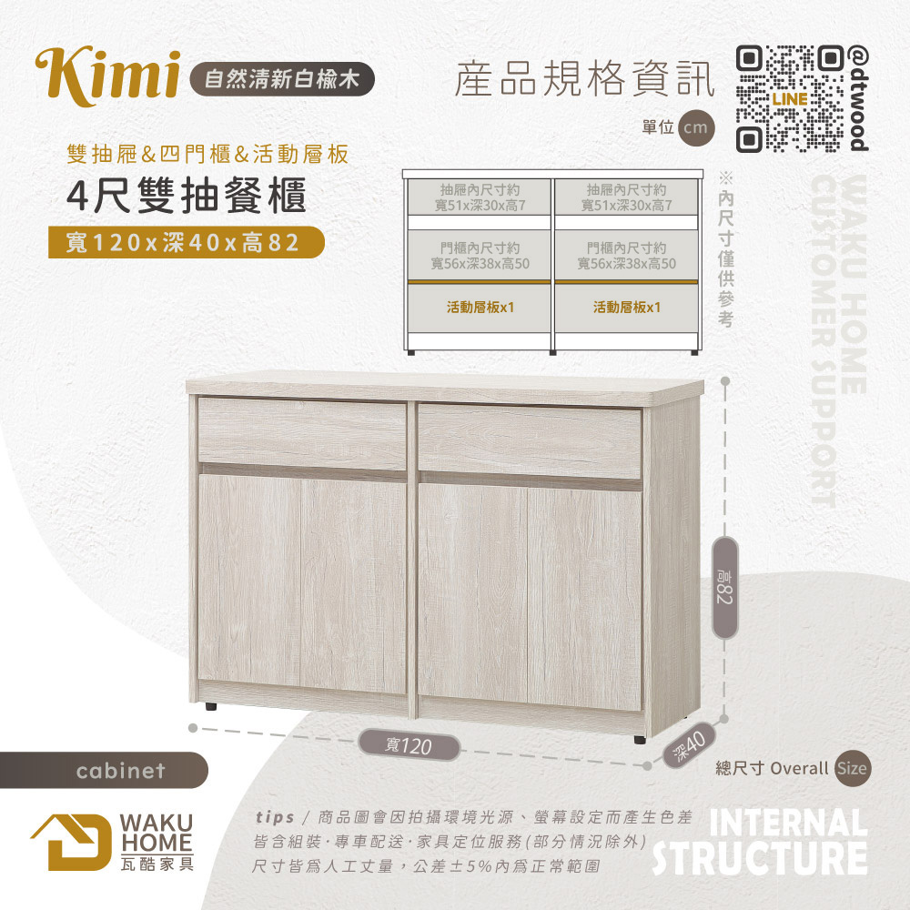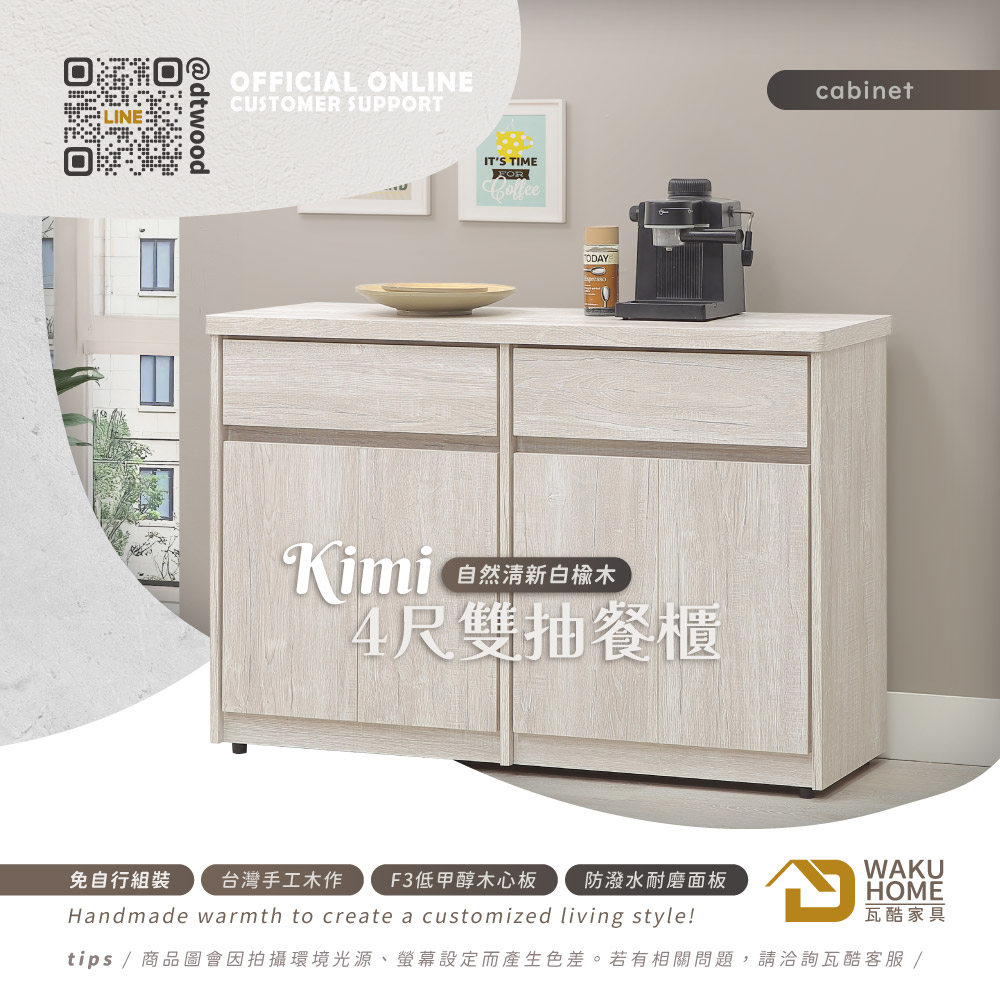 1.符合國際標準低甲醛防蛀木心板 2.採用防潑水耐磨面板 3.抽屜採用鋼珠滑軌五金 4.門片採緩衝鉸鍊五金 5.櫃體層板為可移動式,可依個人使用需求調整
