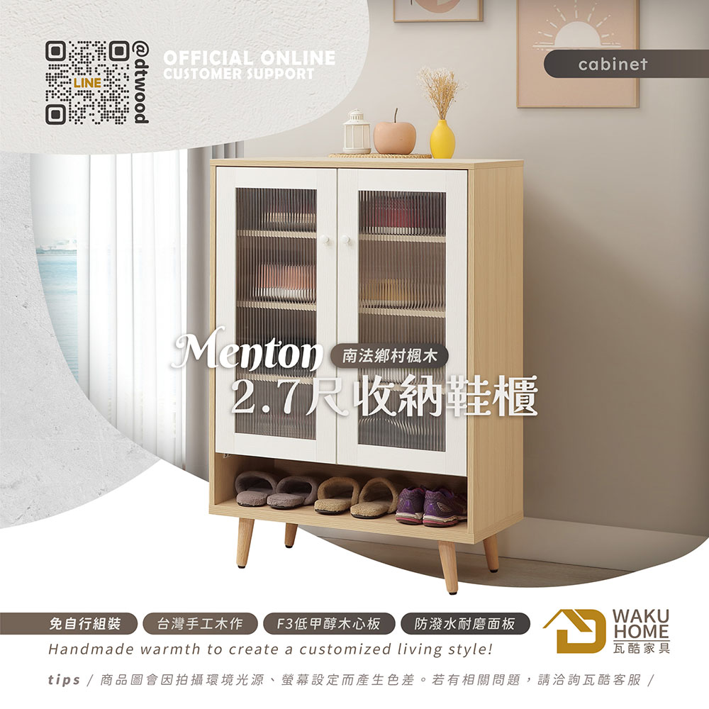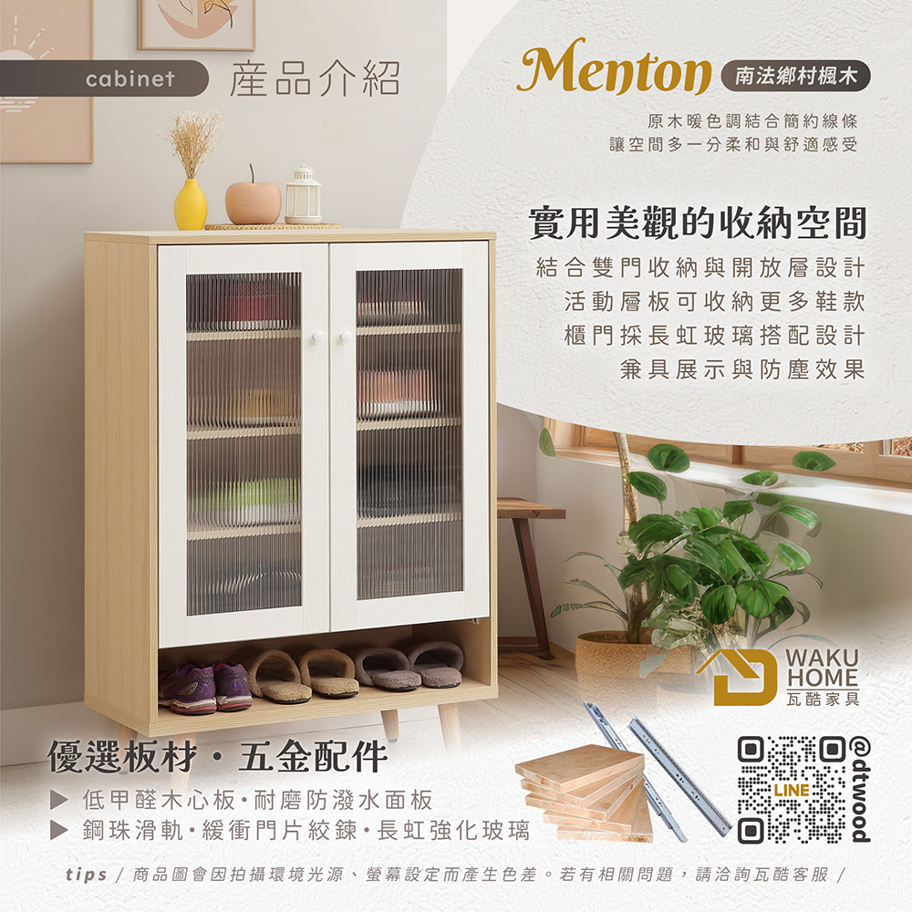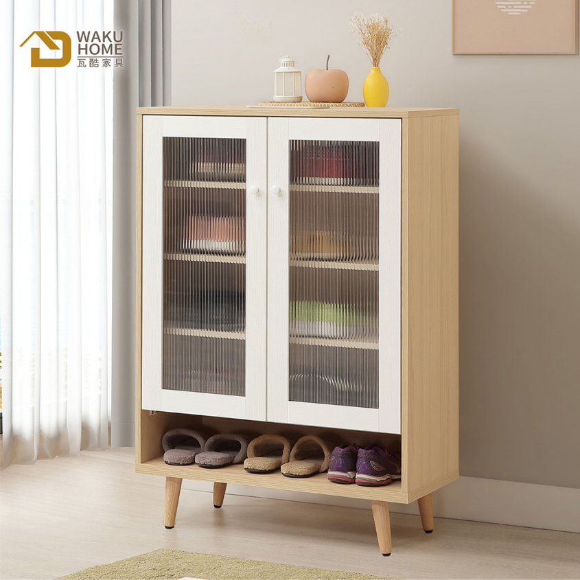1.符合國際標準低甲醛防蛀木心板 2.採用防潑水耐磨面板 3.門片使用長虹強化玻璃 4.門片採緩衝鉸鍊五金 5.櫃體層板為可移動式,可依個人使用需求調整