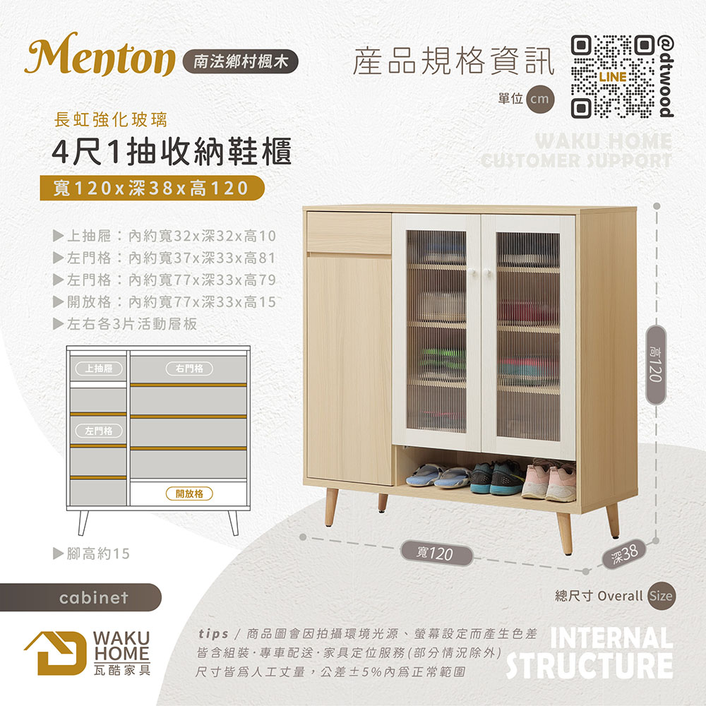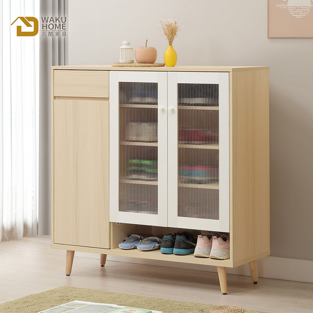 1.符合國際標準低甲醛防蛀木心板 2.採用防潑水耐磨面板 3.門片使用長虹強化玻璃 4.門片採緩衝鉸鍊五金 5.抽屜採用鋼珠滑軌五金 6.櫃體層板為可移動式,可依個人使用需求調整
