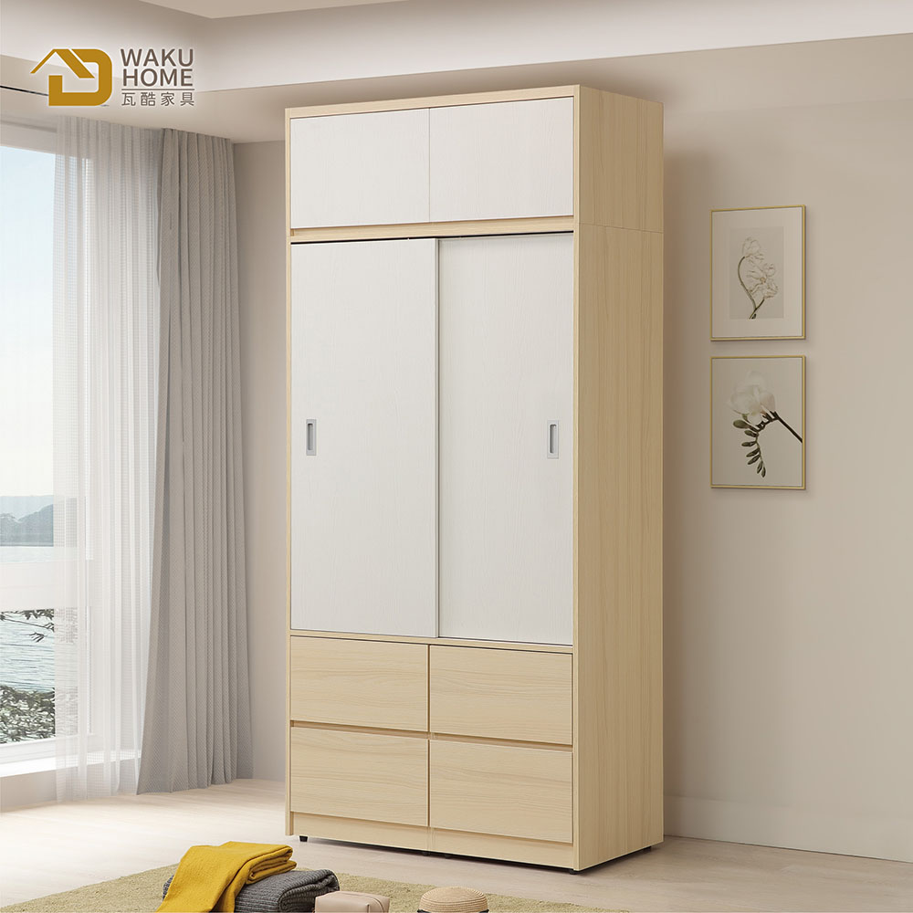 1.符合國際標準低甲醛防蛀木心板 2.採用防潑水耐磨面板 3.抽屜採用鋼珠滑軌五金 4.門片採用緩衝滑門五金