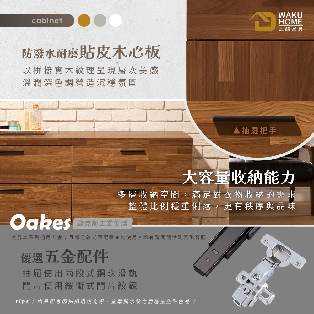 材質說明 材質:正面.側板採用符合國際環保波麗低甲醇防蛀木芯板+科技PVC皮 抽屜:抽牆、抽後採用MDF全包式材質 五金:門片油壓緩衝後鈕、台灣製造鋁合金烤漆手把 腳座:黑砂粉體烤漆腳座