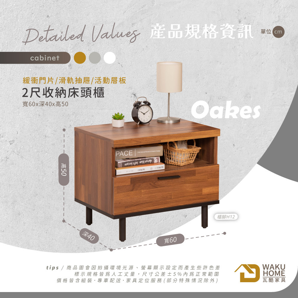 床頭櫃-寬60*深40*高50 (cm)