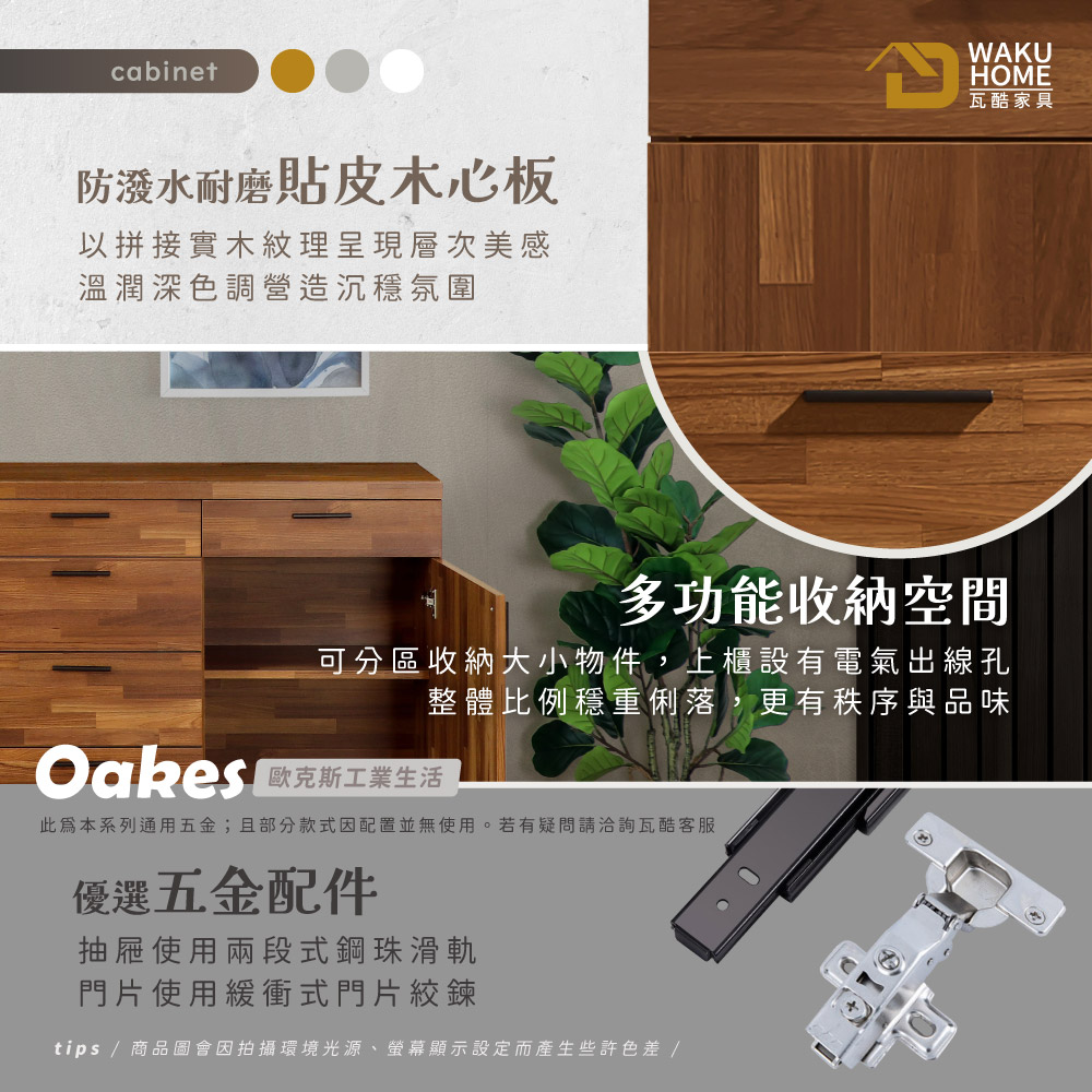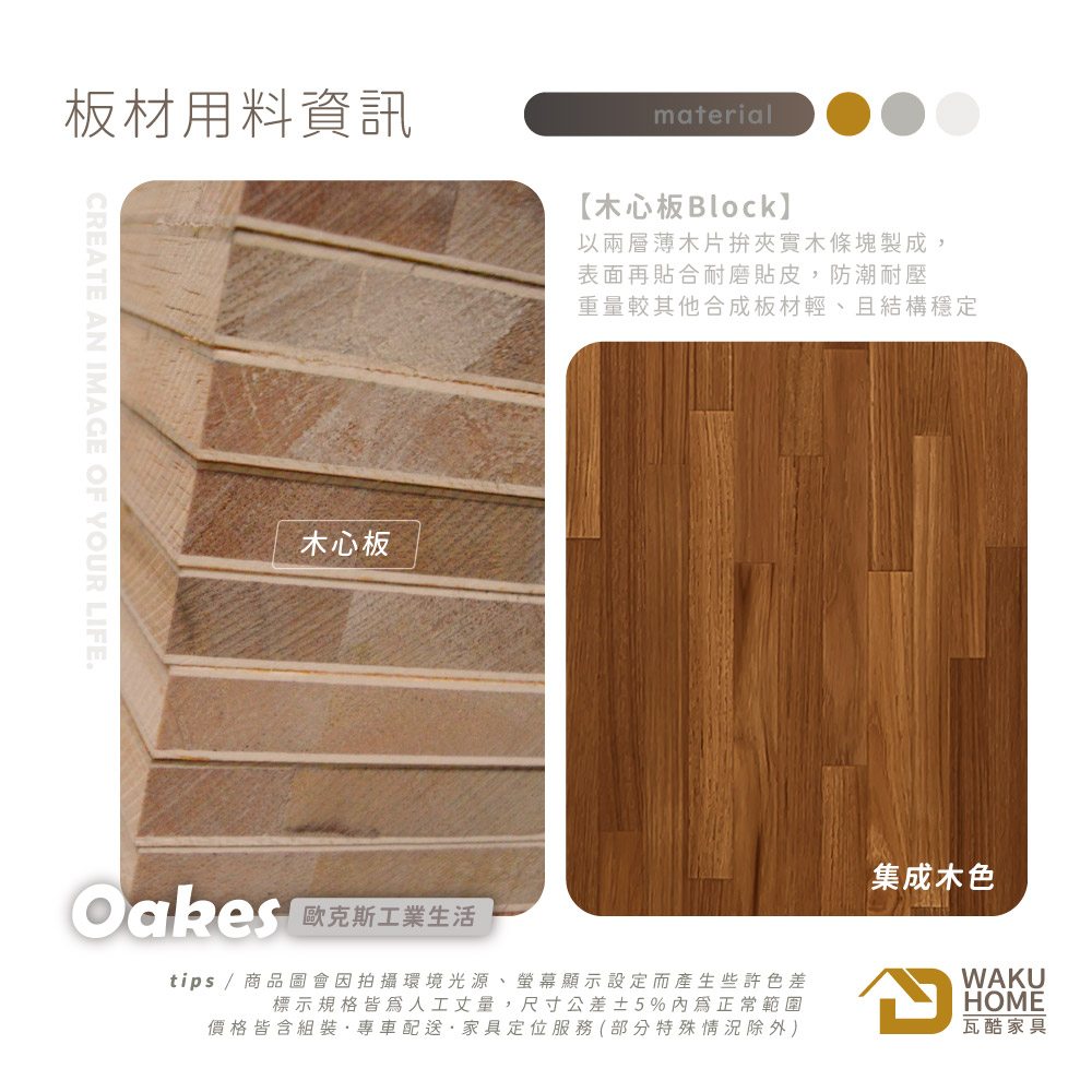材質說明 材質:正面.側板採用符合國際環保波麗低甲醇防蛀木芯板+科技PVC皮 抽屜:抽牆、抽後採用MDF全包式材質 五金:門片油壓緩衝後鈕、台灣製造鋁合金烤漆手把 腳座:黑砂粉體烤漆腳座